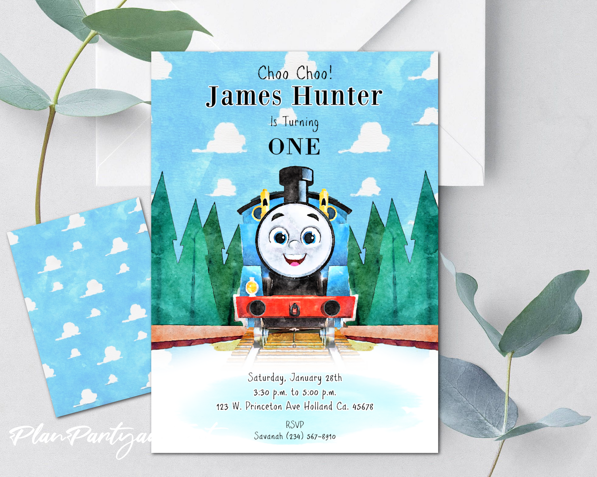 Choo-choo! Invite your little conductor's friends to his/her birthday party with our Thomas The Train birthday invitation. Perfect for any train-loving kid, this invite will make their special day even more unforgettable. All aboard the fun train! (Not responsible for train obsessions that may ensue.)