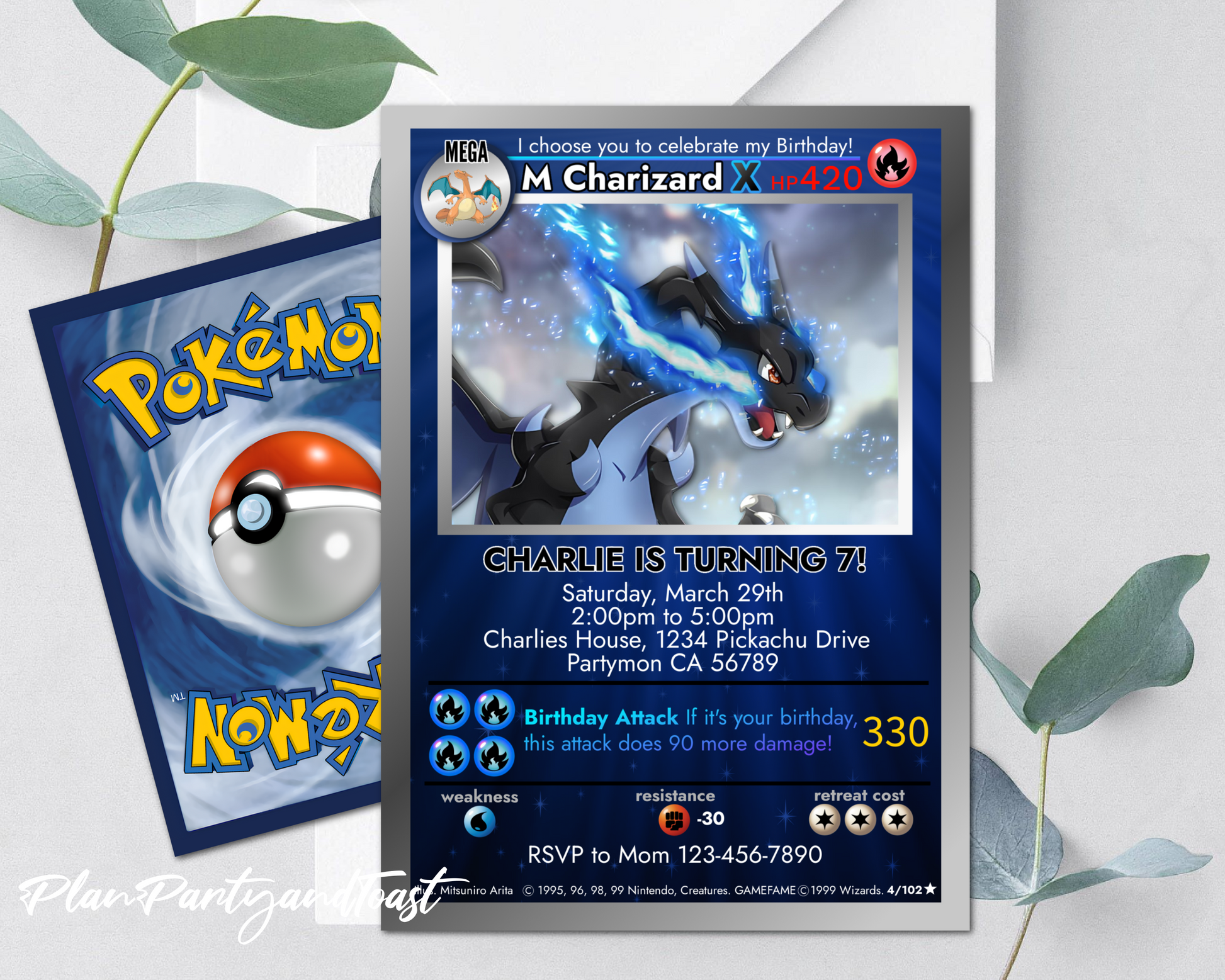 Pokemon birthday invitation Mega Charizard Theme